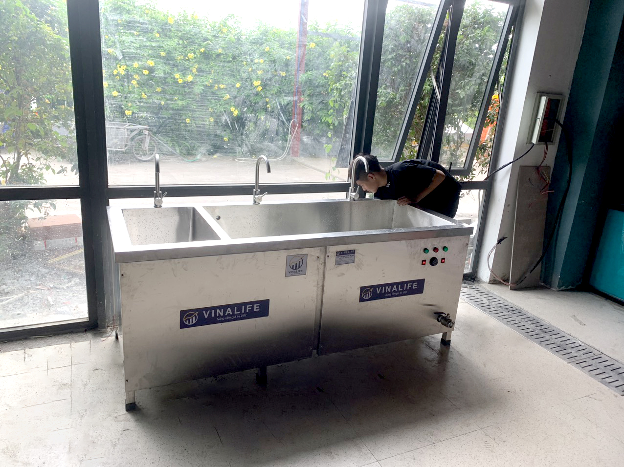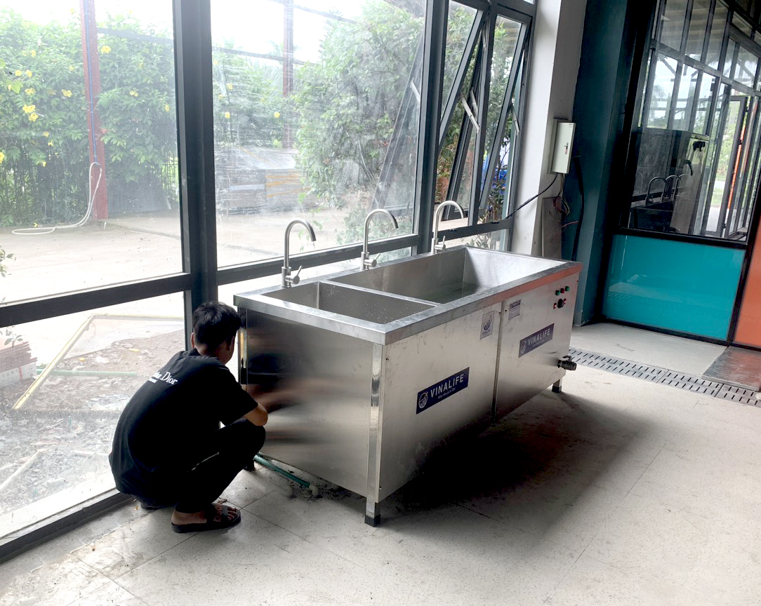 Để vệ sinh lượng lớn bát đĩa cho công nhân tại công ty, giảm tải được nhân công, tiết kiệm được thời gian. cty đã tìm hiểu giải pháp tốt nhất đó là lựa chọn 1 chiếc máy rửa bát siêu âm VINALIFE kích thước lớn để đáp ứng được các nhu cầu về vệ sinh bát đĩa, thiết bị cần rửa, giúp tiết kiệm chi phí, thời gian vệ sinh