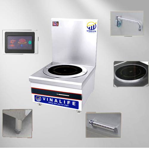 Bếp từ công nghiệp đơn 15kw mặt phẳng được thiết kế sang trọng tinh tế lịch sự, sạch sẽ. Bếp khắc phục tình trạng xả khói của bếp gas công nghiệp.