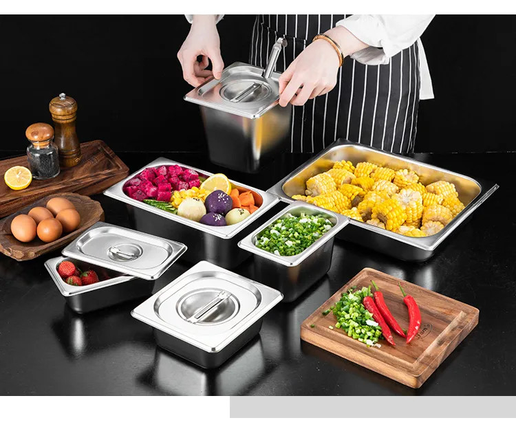 Khay đựng thực phẩm được sử dụng phổ biến nhiều tại quầy bếp công nghiệp, quầy tiệc buffet, quầy bar, quầy phục vụ thức ăn. Không chỉ riêng các nhà hàng, quán ăn… mà còn được sử dụng rộng rãi trong gia đình đều vì sự tiện ích của nó. Khay đựng thực phẩm đa dạng kích thước nên có thể sử dụng để đựng thức ăn, đựng sốt các loại, đựng trái cay, rau củ quả...