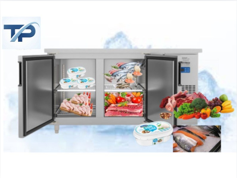 - Toàn bộ thân và cánh cửa của bàn được trang bị lớp polyurethane cách nhiệt kết hợp zoăng cao su ở viền cánh tủ giúp hạn chế tối đa nhiệt bị thoát ra ngoài, mức nhiệt bảo quản thực phẩm luôn ổn định, tiết kiệm điện.