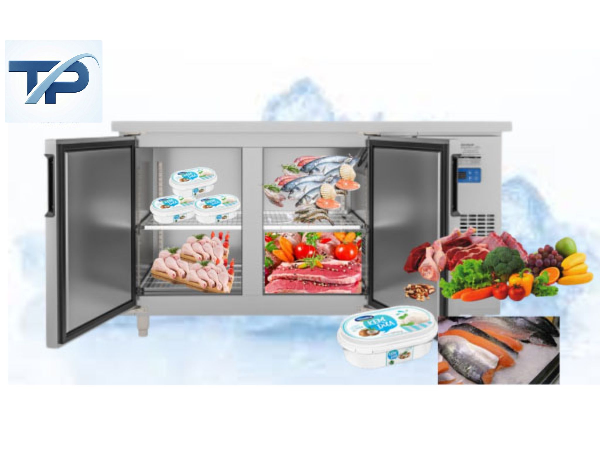 - Toàn bộ thân và cánh cửa của bàn được trang bị lớp polyurethane cách nhiệt kết hợp zoăng cao su ở viền cánh tủ giúp hạn chế tối đa nhiệt bị thoát ra ngoài, mức nhiệt bảo quản thực phẩm luôn ổn định, tiết kiệm điện.
