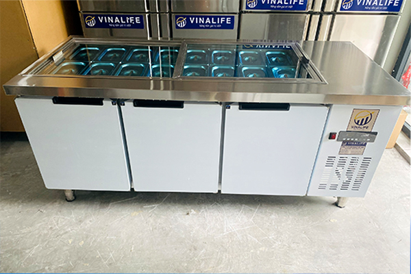 Bàn salad hay tủ bàn salad công nghiệp là thiết bị công nghiệp tiện lợi, được thiết kế cho việc lưu trữ, bảo quản thực phẩm một cách dễ dàng, cho phép người dùng theo dõi và sử dụng nhờ đồng hồ nhiệt và bảng điều khiển thông minh.