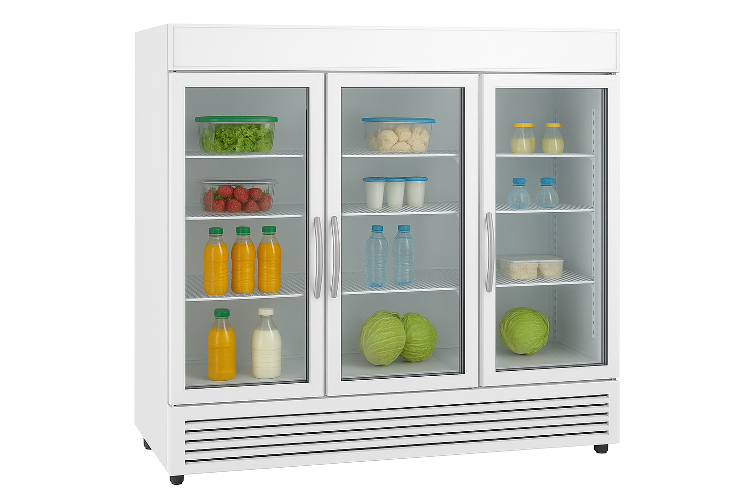 Tủ đông đứng quạt gió 3 cánh kính là dòng thiết bị bảo quản và trưng bày thực phẩm cao cấp, được sử dụng phổ biến tại siêu thị lớn, trung tâm thương mại, chuỗi cửa hàng thực phẩm, nhà hàng – khách sạn cao cấp. Với dung tích cực lớn từ 1200L – 1750L, tủ đáp ứng nhu cầu lưu trữ khối lượng thực phẩm đông lạnh khổng lồ, đồng thời mang đến sự chuyên nghiệp và hiện đại trong trưng bày.