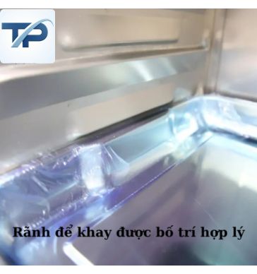 - Phần thiết kế bên trong tủ hấp khăn dùng điện 6 khay với các khay được thiết kế khoa học, khoảng cách đều nhau và có tay nắm giúp dễ dàng kéo ra vào trong quá trình vận hành. Với hai dạng khay chính là khay nấu không lỗ và khay hấp có lỗ.