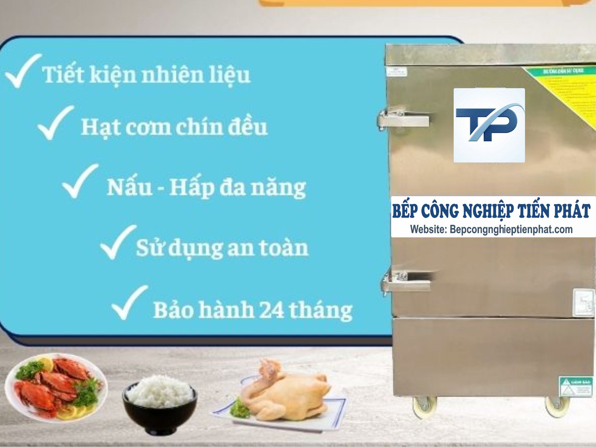 – Tủ nấu cơm công nghiệp do Tiến Phát cung cấp được bảo hành lên tới 24 tháng