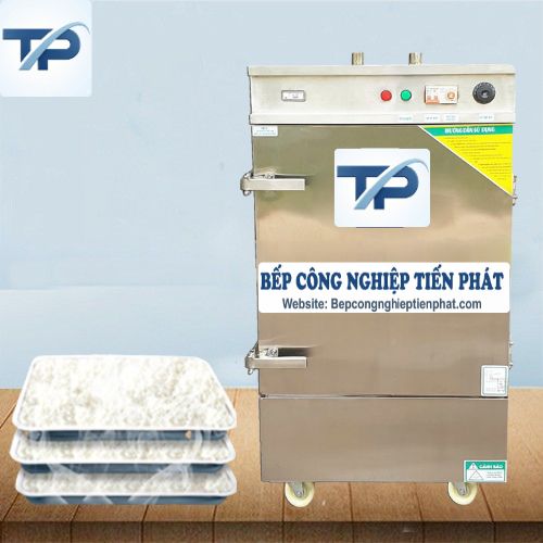 – Nếu bình thường bạn sử dụng nguồn điện để vận hành tủ nấu cơm, nhưng không may trong quá trình nấu lại bị mất điện giữa chừng. Thì với tủ cơm 6 khay của Tiến Phát , bạn có thể tiếp tục sử dụng gas để nấu chín cơm.