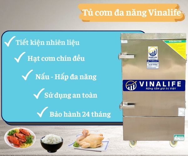 Công ty cổ phần dịch vụ thương mại xuất nhập khẩu VINALIFE hoạt động với sứ mệnh “Nâng tầm giá trị Việt”, chuyên cung cấp các loại tủ nấu cơm, hấp thực phẩm công nghiệp chất lượng với giá thành ưu đãi. Chúng tôi có đa dạng các loại tủ nấu cơm như: tủ nấu cơm điện, tủ nấu cơm gas hoặc điện, tủ nấu cơm gas với đa dạng số khay: 6 khay, 8 khay, 12 khay, 24 khay… VINALIFE sẽ giúp quý khách hàng chọn được lựa chọn tủ nấu cơm như ý với chi phí thấp nhất.