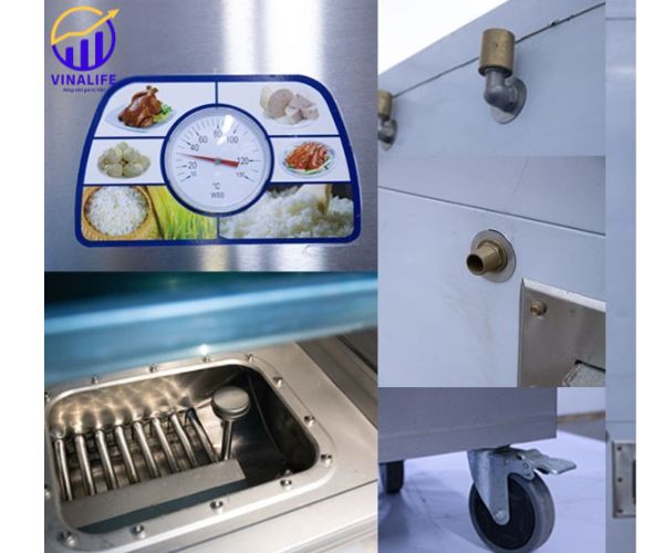 Bên cạnh nhờ cấu có lớp foam cách nhiệt ở giữa, tay khóa đóng chặt cửa và kèm them đó có gioăng cao su nên tủ giữ nhiệt tốt và cách nhiệt tốt.