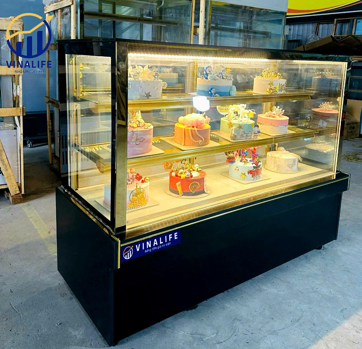 Thiết kế 3 tầng rộng rãi: Tối ưu không gian trưng bày, giúp sắp xếp bánh kem khoa học và bắt mắt.